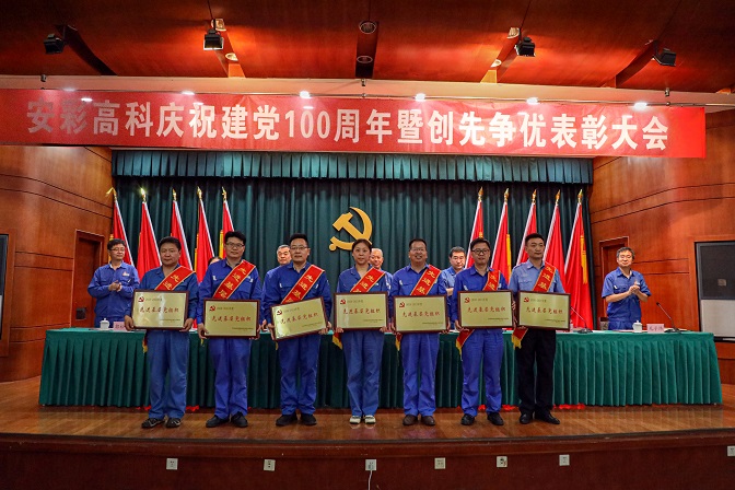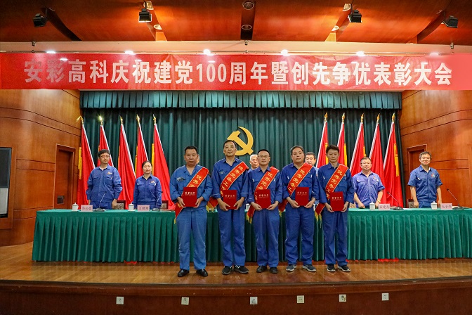 6月30上午,安彩高科舉行慶祝建黨100周年暨創先爭優表彰大會。公司領導,各總支、支部書記,先進代表,新發展預備黨員、入黨積極分子及黨員代表共計180余人參加大會。公司黨委委員、副總經理蒼利民主持大會。