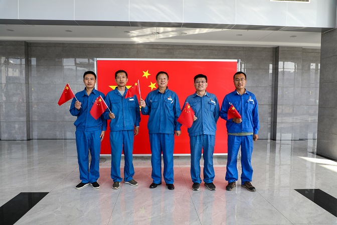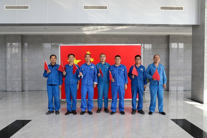 升旗儀式結(jié)束后,職工們激動的心情久久不能平靜,紛紛拿出手機記錄下寶貴瞬間。大家揮舞手中的紅旗,在“熱烈慶祝中國共產(chǎn)黨成立100周年”的大展板前擺個造型……對祖國的無限熱愛定格在一幅幅難忘的畫面里,銘刻在九月澄澈的廠區(qū),也深深地烙印在每個人的心間。
