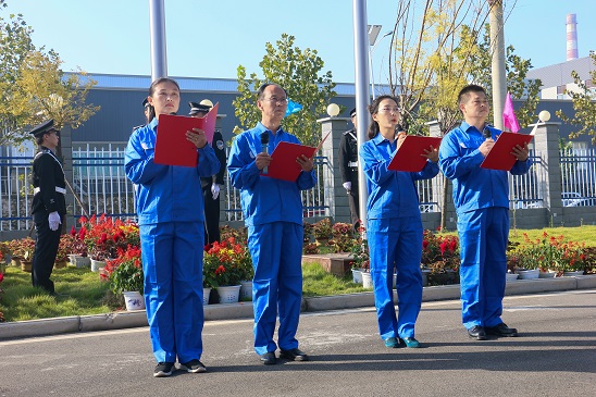 上午九時整,升國旗儀式正式開始。100余名干部職工整隊入場,在安彩光熱科技廣場組成方陣。國旗護衛(wèi)隊邁著鏗鏘有力的步伐,護送鮮艷的五星紅旗正步走向旗桿。“升國旗,奏國歌!”伴隨著雄壯的國歌聲,升旗手迎風振臂,鮮艷的五星紅旗冉冉升起,在晨光下熠熠生輝。仰望國旗,每一個人都無比激動、無比自豪,臉上洋溢著真摯的愛國之情。